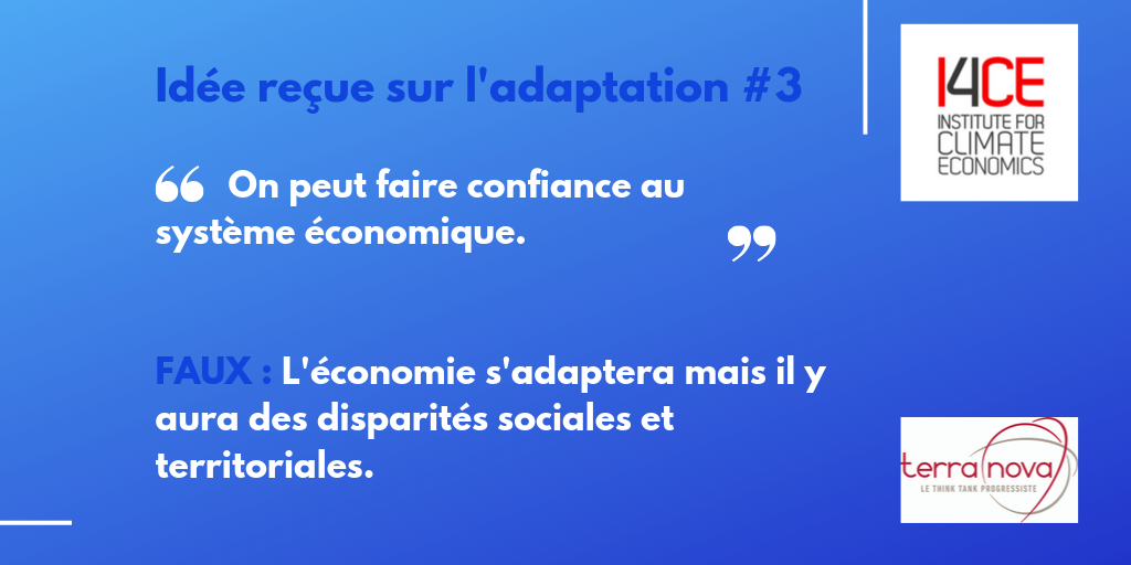 Même en gardant confiance dans la capacité globale de nos systèmes économiques et sociaux à faire face à des changements de l’ordre de +2°C nous ne pouvons ignorer qu’une adaptation subie le serait au détriment de certains acteurs : certains territoires et certaines filières pourraient être de grands perdants s’ils ne préparaient pas leur transformation. Continuer d’investir aujourd’hui dans des activités que le changement climatique rendrait non viables, c’est s’exposer à devoir gérer demain des crises sociales et éventuellement sanitaires majeures. Symétriquement, ne pas anticiper, c’est potentiellement se priver d’opportunités intéressantes que l’on ne se donnera pas les moyens de saisir à temps.