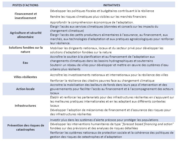Pour mettre en œuvre rapidement ces recommandations, la troisième partie du rapport se concentre sur l’action immédiate et la dynamique de l’année de l’adaptation. Elle propose de mobiliser ceux qui veulent avancer autour de ce « programme audacieux » – réunissant des initiatives et coalitions existantes :