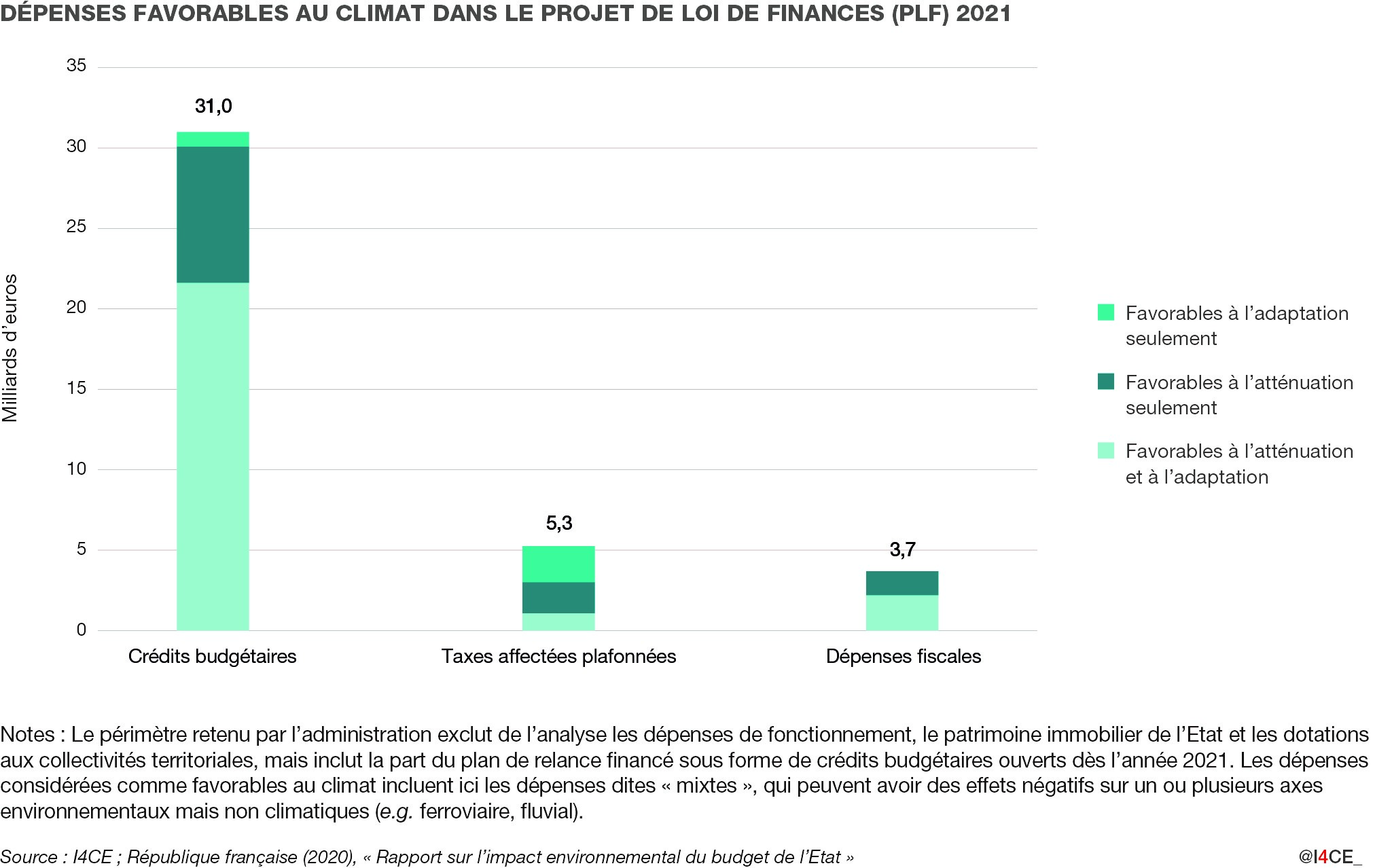 Sur la base de l’évaluation fournie par le gouvernement, les dépenses favorables au climat dans le Projet de Loi de Finances (PLF) 2021 sont estimées à 39,9 milliards d’euros.