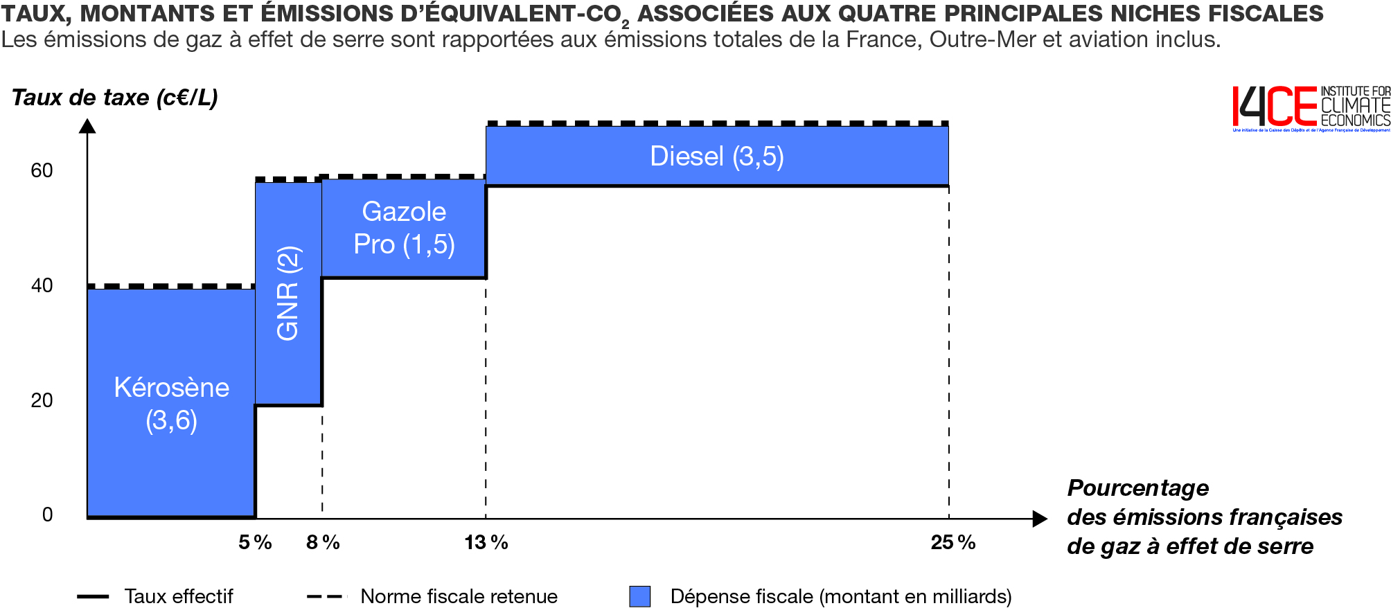 En ce qui concerne les dépenses défavorables, les niches fiscales dites « déclassées », qui incluent notamment l’absence de taxation sur le kérosène et le différentiel de taxation entre le gazole et l’essence, et qui peuvent représenter plusieurs milliards d’euros, sont exclues de l’évaluation fournie par l’État.