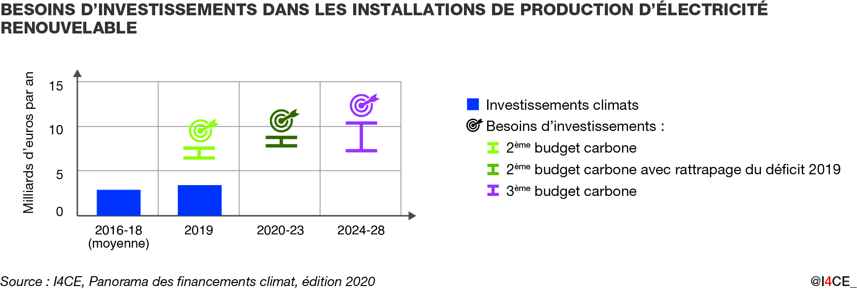 Dans le secteur de la production d'énergies renouvelables, les investissements ont augmenté en 2021, avec des évolutions contrastées selon les filières. Tous les scénarios de transition prévoient une progression rapide des besoins d'investissements, progression toutefois modérée par la baisse des prix des équipements.