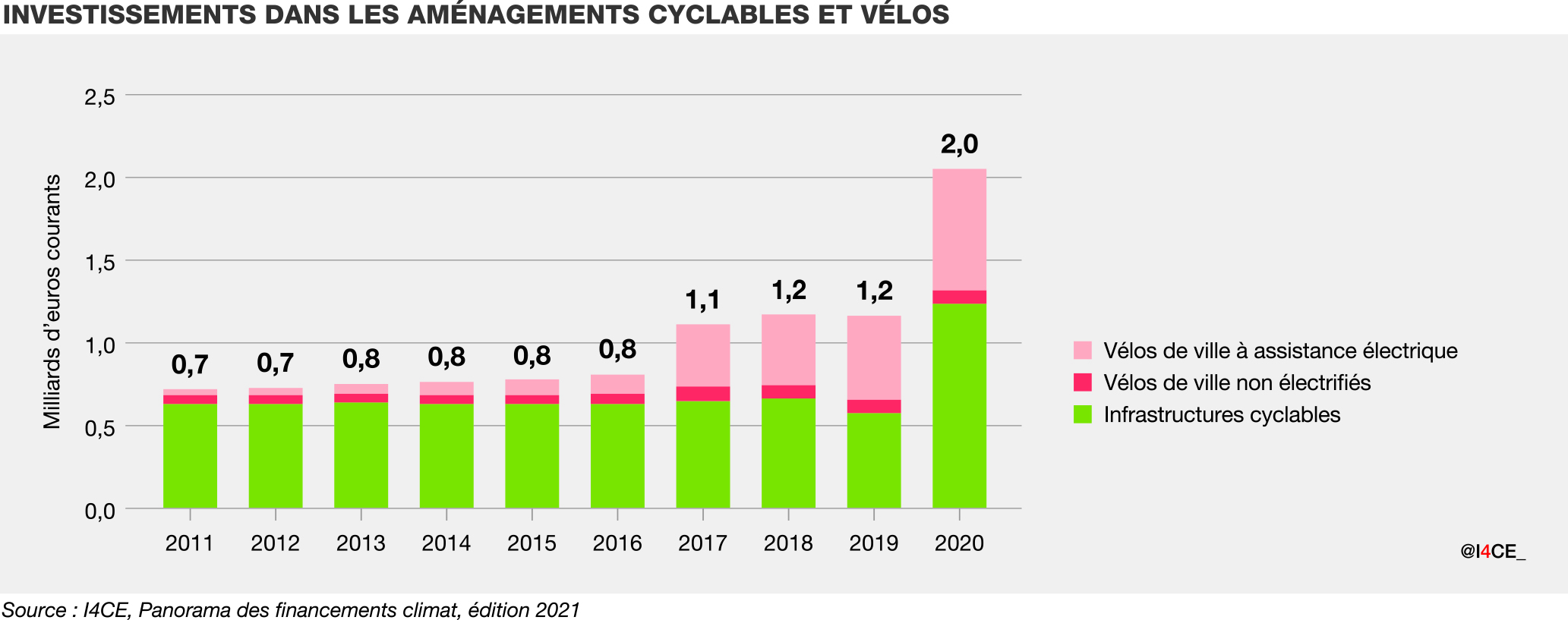 Sur les autres segments des véhicules, l'évolution est contrastée : alors que les immatriculations ont été plutôt stables pour les véhicules utilitaires légers électriques et GNV, elles ont fortement augmenté dans le segment des autobus et poids lourds bas-carbone. De même, les investissements dans les vélos ont augmenté, portés par l'essor des ventes de vélos à assistance électrique.