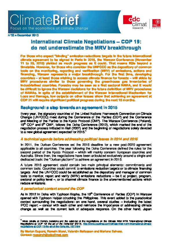 International Climate Negotiations – COP 19: do not underestimate the MRV breakthrough