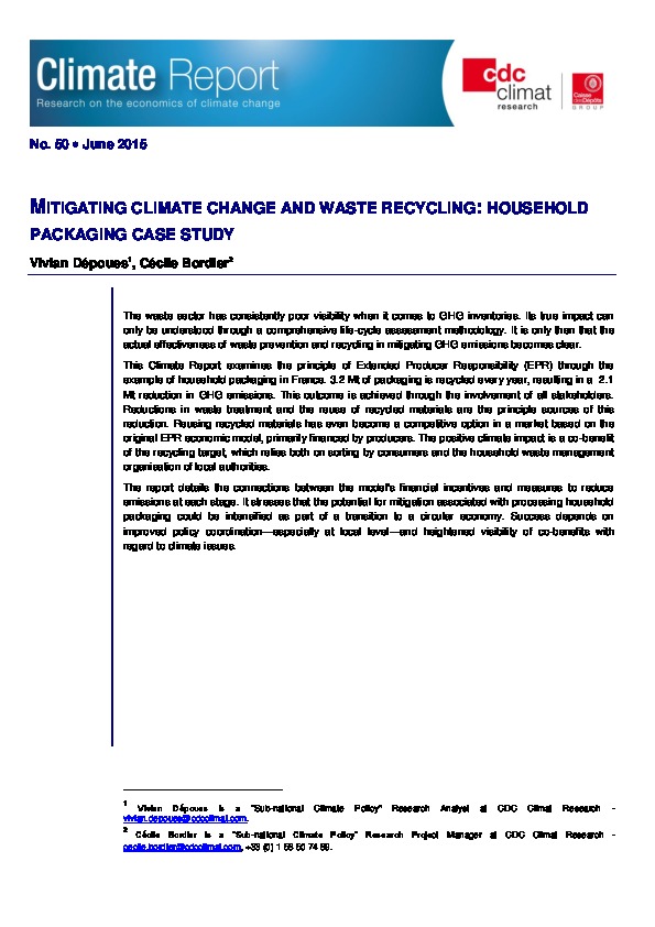Climate Report n° 50 « Mitigating climate change and waste recycling: household packaging case study »