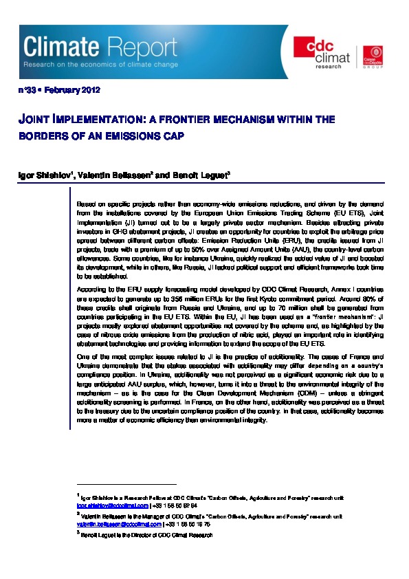 JOINT IMPLEMENTATION: A FRONTIER MECHANISM WITHIN THE BORDERS OF AN EMISSIONS CAP