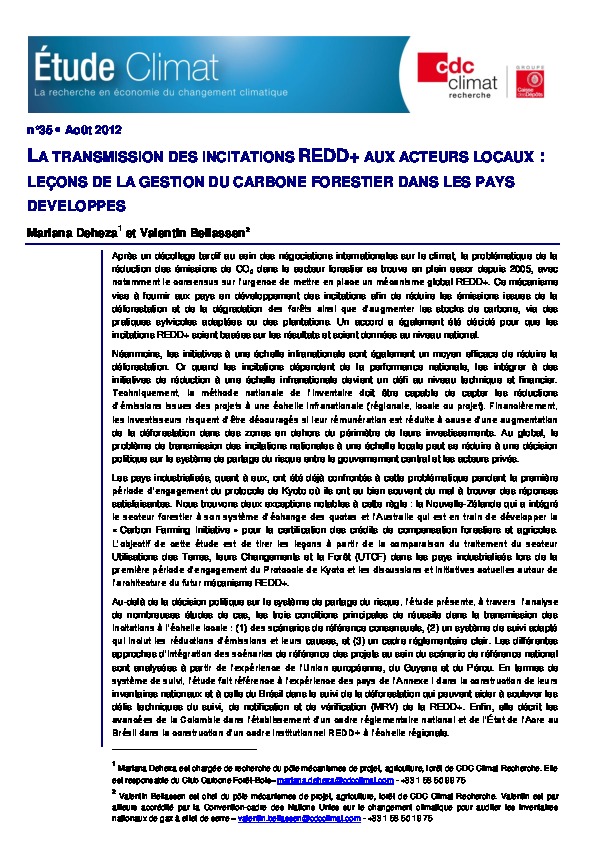 Nevertheless, local initiatives are a useful mean of tackling deforestation. However, when carbon incentives depend on national performance, linking them to local initiatives is a technical and financial challenge. Technically, the national accounting framework must be able to track emissions-reduction initiatives at the sub-national level (regional, local or projet level). Financially, investors are likely to be scared away if their reward depends on deforestation occuring outside the area of their investment. Ultimately, the issue of transferring national incentives coming from supranational agreements to the local level can be reduced to a political decision on risk sharing between the State and private stakeholders.