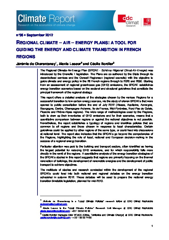 Regional climate – air – energy plans: A tool for guiding the energy and climate transition in French regions Download