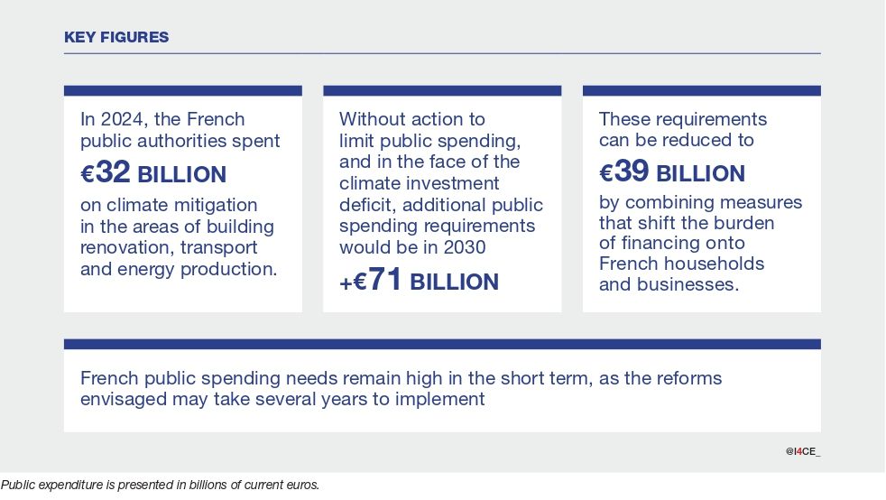 Private finance cannot be summoned by decree. Today, households and businesses often lack a viable economic model for their climate investments. And what the private sector cannot do, the public sector will have to fund. Thus, in the face of the climate investment deficit and without action to limit spending, the need for additional public spending would reach €71 billion in 2030.