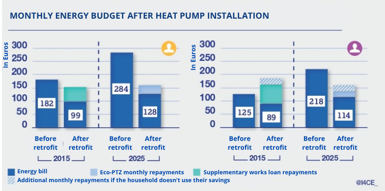 - Installing a heat pump enables households to make enough energy savings to cover the monthly loan repayments.