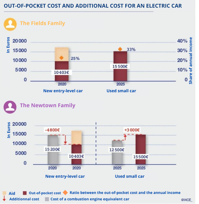 It should also be noted that for the Fields household, an alternative scenario is described in the annexes, comparing the purchase of an electric car with that of a combustion engine equivalent.