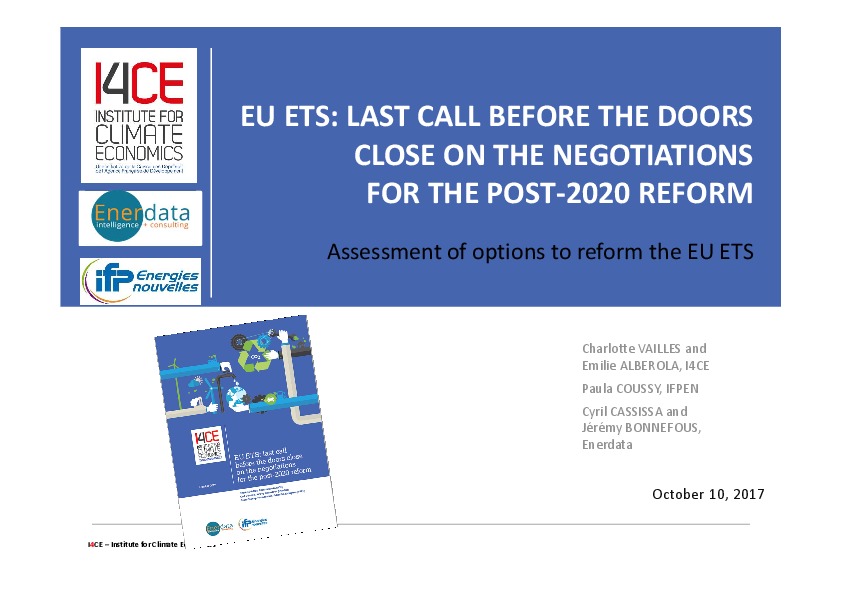 Presentation : EU ETS – Last call before the doors close on the negotiations for the post-2020 reform