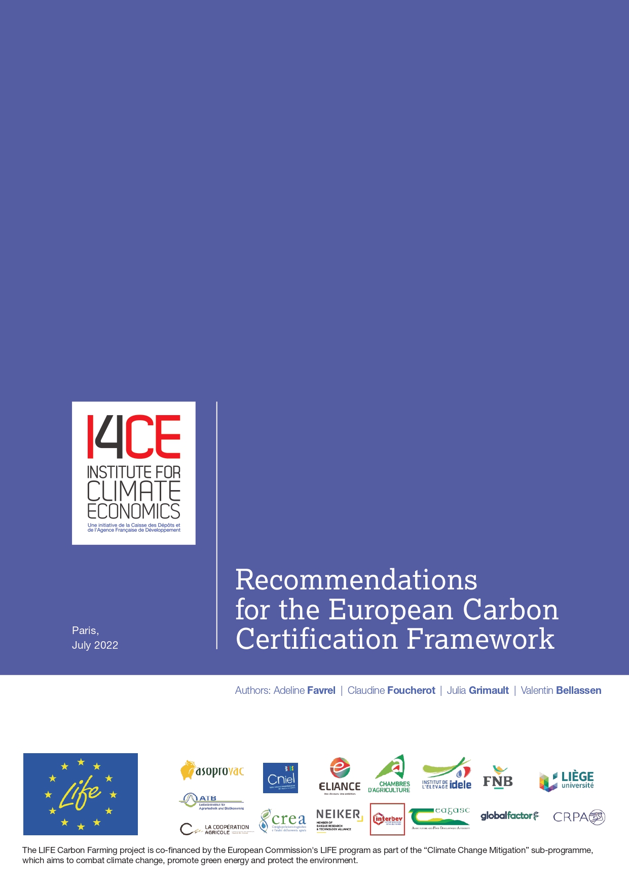 To achieve the climate goals of the UE, The European Commission wants to create a carbon certification framework to encourage carbon storage in the land sector. The challenge is to develop a common and harmonised framework at the European level by better relying on the expertise acquired through existing certification frameworks. With this study, I4CE propose 7 recommendations, inspired by both our concrete experience with the French Label Bas-Carbone to which we have contributed, and by 15 years of research on carbon certification.