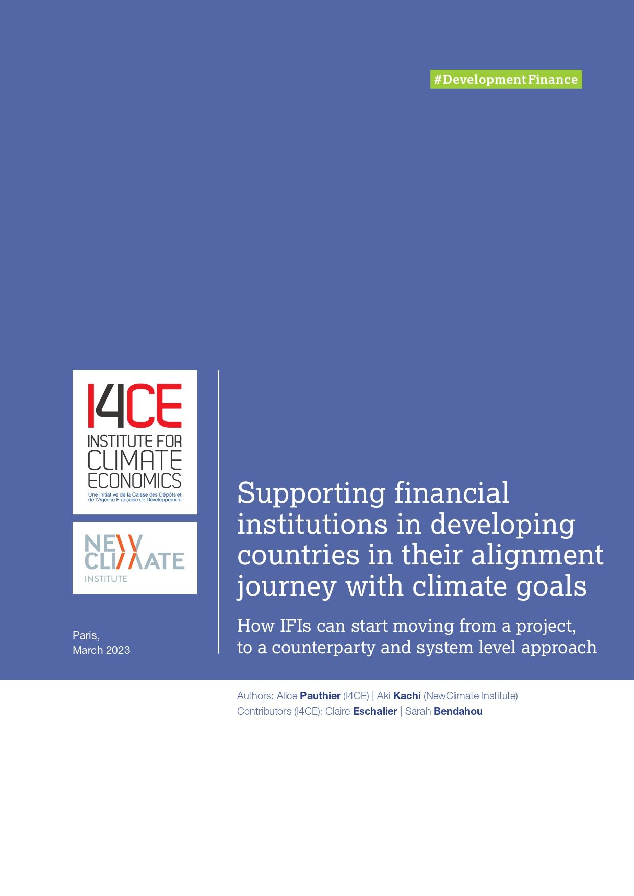 This report builds on previous work developed by the consortium of think tanks gathering Germanwatch, NewClimate Institute and the World Resources Institute, namely ‘Aligning financial intermediary investments with the Paris agreement’. Written in partnership with NewClimate Institute, this report provides practical guidance for International Financial Institutions (IFIs) to support financial institutions’ alignment with the Paris Agreement goals, and contribute to transforming local financial systems. This guidance is developed around three pillars: