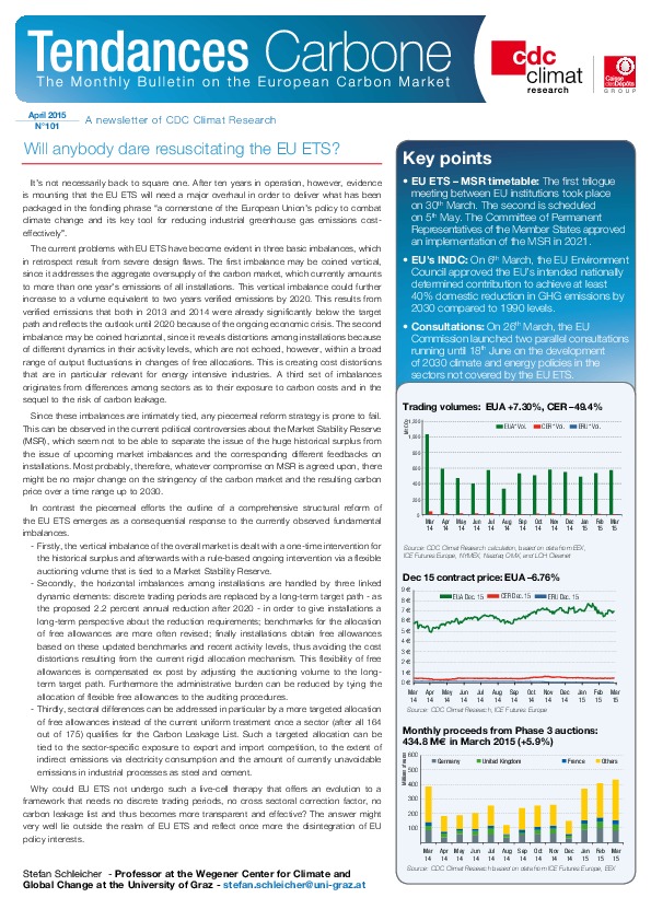 - EU ETS – MSR timetable: The first trilogue meeting between EU institutions took place on 30th March. The second is scheduled on 5th May. The Committee of Permanent Representatives of the Member States approved an implementation of the MSR in 2021.