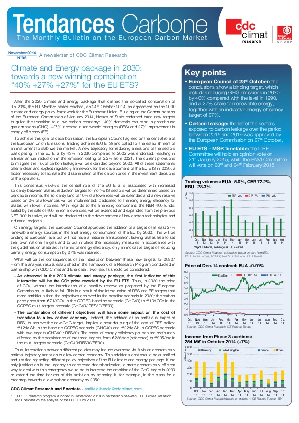 Climate and Energy package in 2030: towards a new winning combination “40% +27% +27%” for the EU ETS?