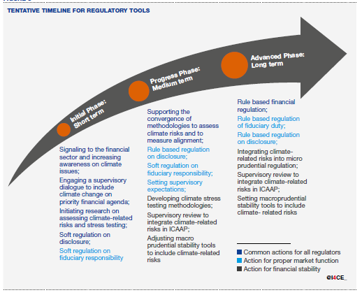 The instruments to be used  by regulators obviously depend on the objective pursued. If we stick to the traditional objectives of financial regulation, it is therefore necessary to use both the tools that strengthen financial stability and those that serve to improve transparency and disclosure. But it will take time to fully integrate climate-related risks into financial regulation. Measures that can be taken in the short term and launched without further delay include, for example, raising awareness, set supervisory expectations, enhance disclosure and strengthen the supervisory processes. Some regulatory measures should be among the priorities of supervisors but are not ready yet to be implemented: climate stress tests, for example, are only developed by a few leading supervisors who are still in the initial stages of development. Other measures, finally, will require more time. More challenging is integrating climate-related risks into rules-based prudential regulations , such as banks’ capital requirements., This will require widely accepted risk metrics and robust risk assessment methodologies to adress the “radical uncertainty” of climate change, as well as a certain level of international cooperation to implement them.