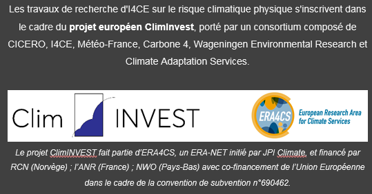Voir le support de présentation d’I4CE : Les défis de l’intégration du risque climatique physique en finance