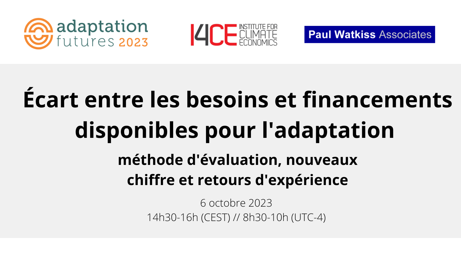 - Écart entre les besoins et financements disponibles pour l’adaptation : méthode d’évaluation, nouveaux chiffre et retours d’expérience ;