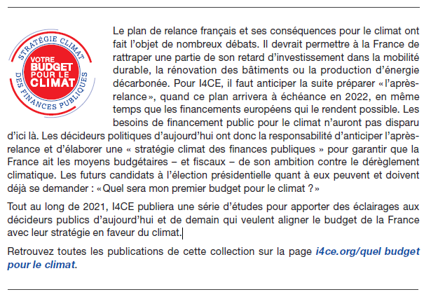 L’Institut de l’économie pour le climat (I4CE) et le rapporteur général du budget Laurent Saint Martin ont organisé une webconférence pour faire le point sur la mise en œuvre de ces engagements, de manière transpartisane et avec les témoignages d’entreprises et de collectivités. Cet évènement permettra également de lancer la réflexion sur le financement public de la lutte contre les changements climatiques après-2022, quand les crédits de la relance arriveront à échéance.
