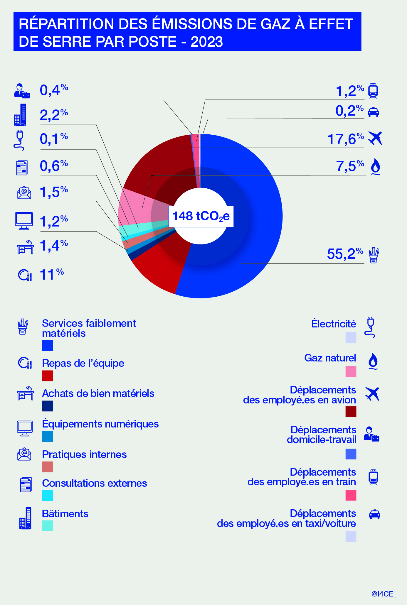 Figure 1 : Répartition des émissions par poste – I4CE 2023