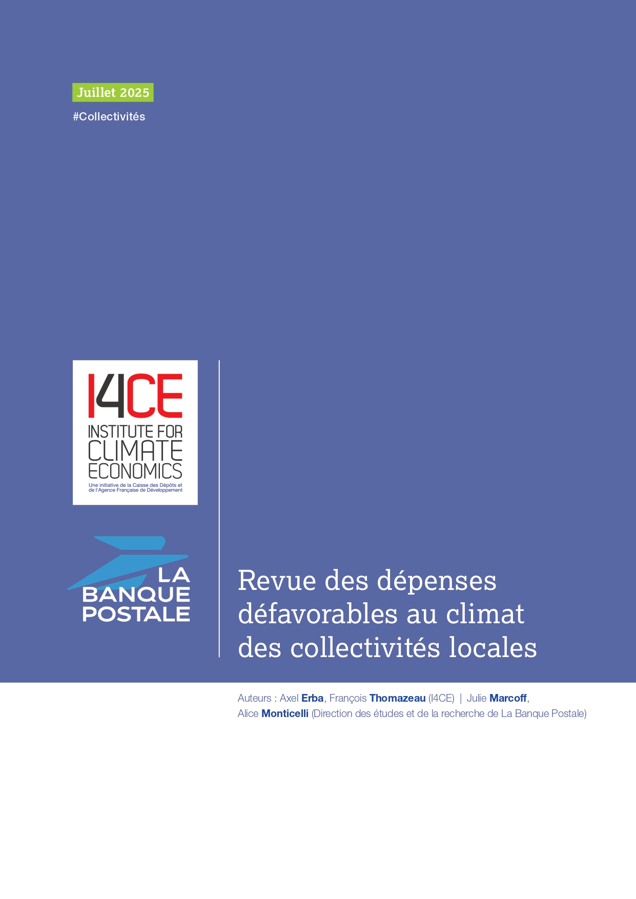 La présente étude constitue une revue nationale inédite des dépenses défavorables au climat portées par les collectivités. En mobilisant les données économiques et budgétaires de 2011 à 2023, elle dresse un état des lieux sectoriel et quantitatif de ces flux, selon une méthodologie transparente et évolutive. Trois grandes familles de dépenses « brunes » ont été analysées : les dépenses relatives à l’achat de biens par les collectivités, les dépenses d’aménagement du territoire et les dépenses de fonctionnement courant (notamment énergétiques). Ce premier diagnostic quantitatif constitue le socle d’une deuxième phase de travaux, à dimension qualitative, qui analysera les leviers de transformation et les enjeux économiques d’une réorientation des dépenses défavorables identifiées.