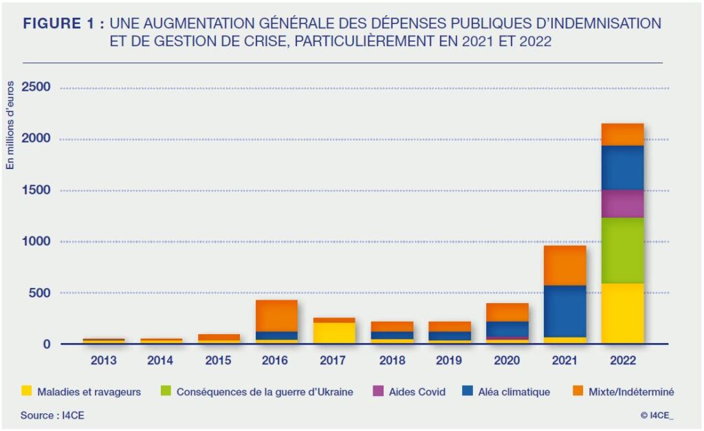 Les dépenses publiques d’indemnisation et de prévention des crises ont fortement augmenté de 2013 à 2022