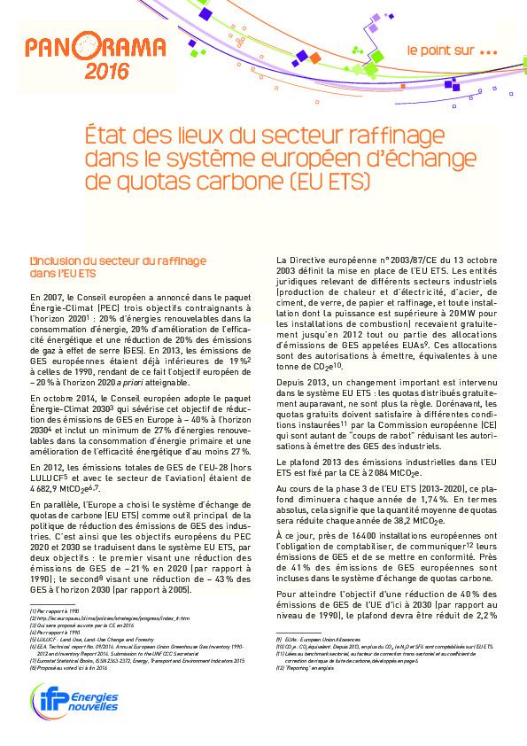 État des lieux du secteur raffinage dans le système européen d’échange de quotas (EU ETS)