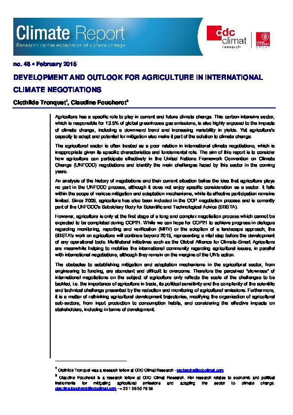Développement et perspectives de l’agriculture dans les négociations climatiques internationales Télécharger
