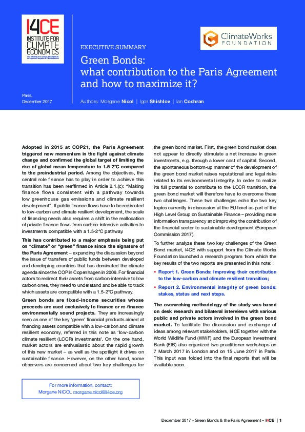 Green Bonds: quelle contribution à l’Accord de Paris et comment améliorer cette contribution? Télécharger