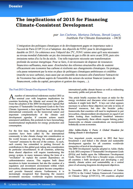 Les implications de l’année 2015 pour le financement d’un développement aligné avec le climat