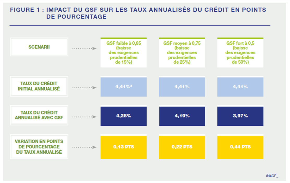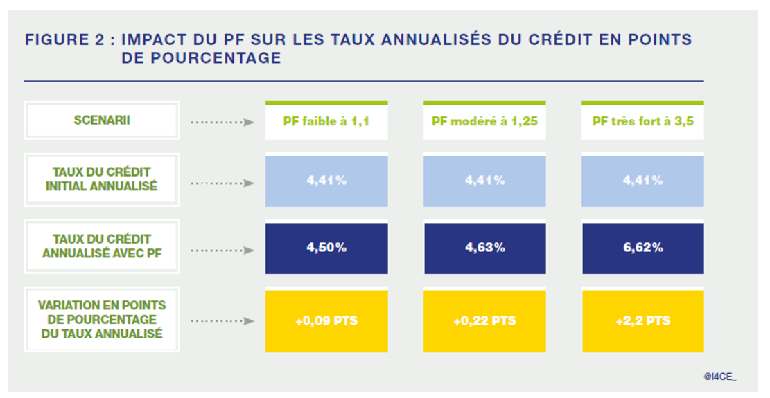 Cet argument est la base théorique pour pénaliser des activités carbo-intensives avec un PF. Au-delà des débats sur l’existence d’un différentiel de risques, se pose l’enjeu plus politique de savoir si ces instruments seraient pertinents pour accroitre la contribution des banques au financement de la transition. C’est sur ce point que l’étude d’I4CE apporte de nouveaux résultats. Elle détermine quels seraient les impacts d’un GSF ou d’un PF sur le financement des projets, sur la rentabilité interne des banques, et sur la croissance ou la contraction du crédit. A partir d’une modélisation quantitative, l’ensemble de la chaine d’impact a été retracée depuis une modification des règles prudentielles jusqu’au financement d’un projet.
