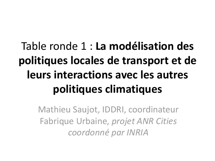 La modélisation des politiques locales de transport et de leurs interactions avec les autres politiques climatiques par Mathieu Saujot