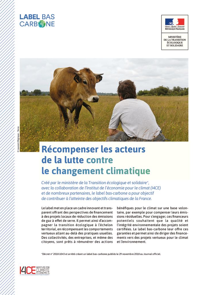 Le label bas-carbone est un cadre de certification carbone national volontaire. Porté par le Ministère de la Transition écologique et solidaire, ce référentiel innovant et transparent offre des garanties sur la qualité des projets locaux de réduction des émissions de gaz à effet de serre ou de séquestration naturelle du carbone. Des garanties qui ouvrent aux porteurs de ces projets de nouvelles perspectives de financement.