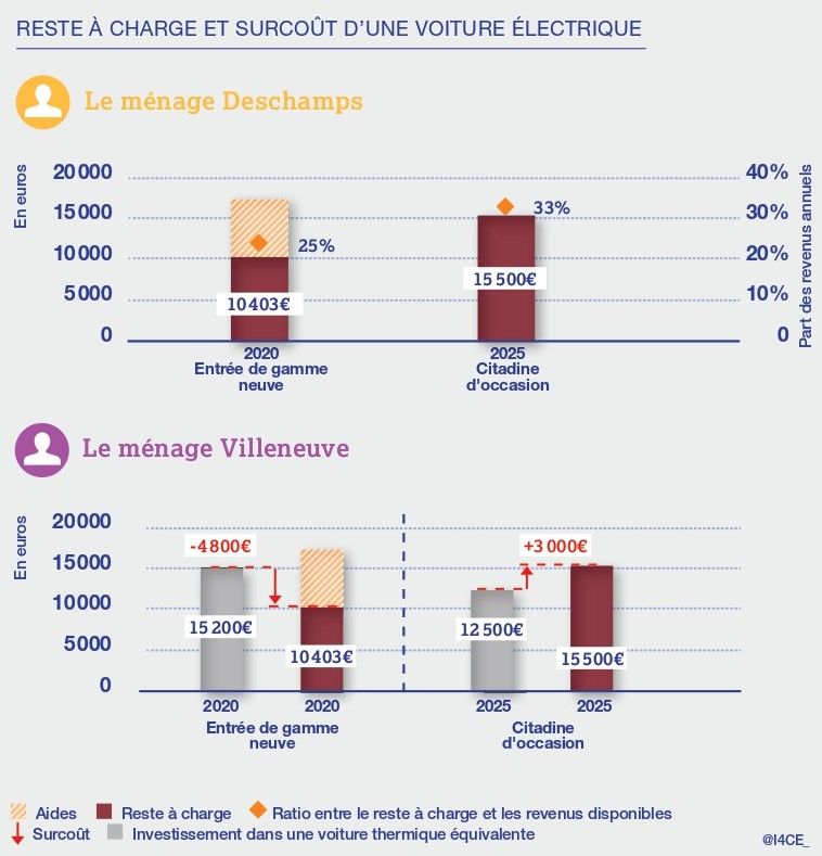 - Pour le ménage Deschamps, le reste à charge a augmenté et les économies de carburant ne couvrent toujours pas le financement d’une voiture électrique