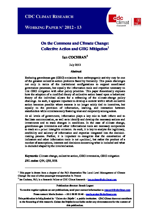 On the Commons and Climate Change: Collective Action and GHG Mitigation