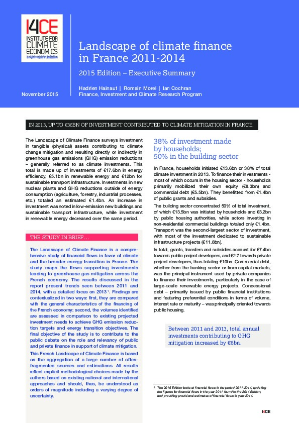 • Panorama des financements climat – édition 2015 – feuillet sectoriel énergie Télécharger