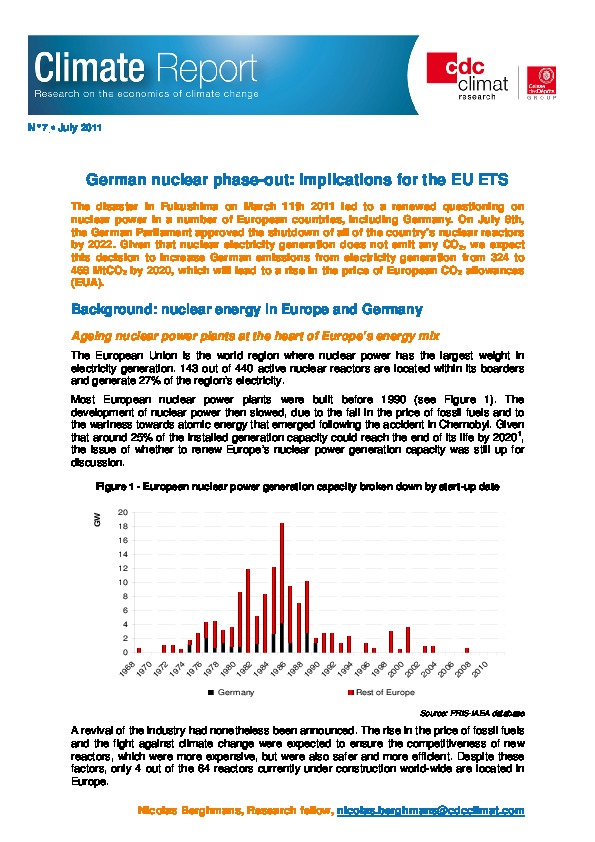 Sortie du nucléaire allemand : quels impacts pour l’EU ETS ? »