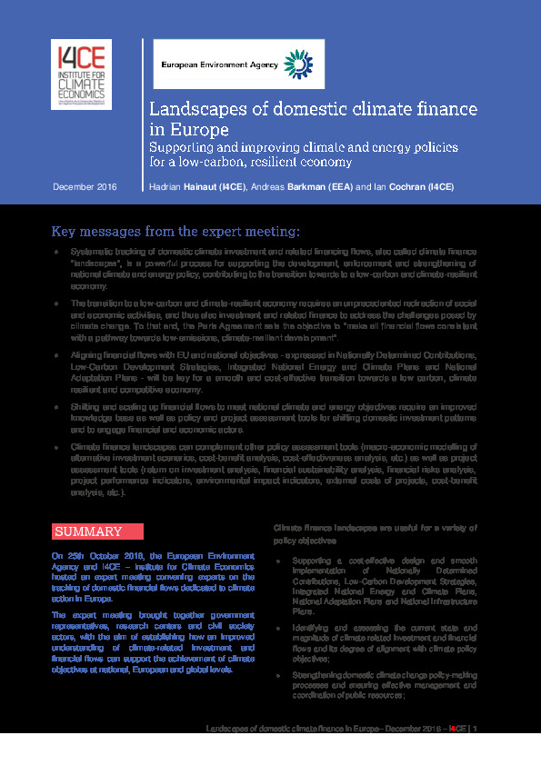 Résumé de l’atelier I4CE-AEE sur le suivi des financements climat en Europe