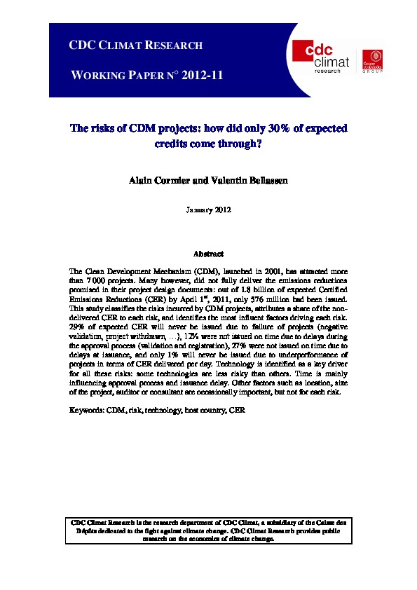 The risks of CDM projects: how did only 30% of expected credits come through? Télécharger